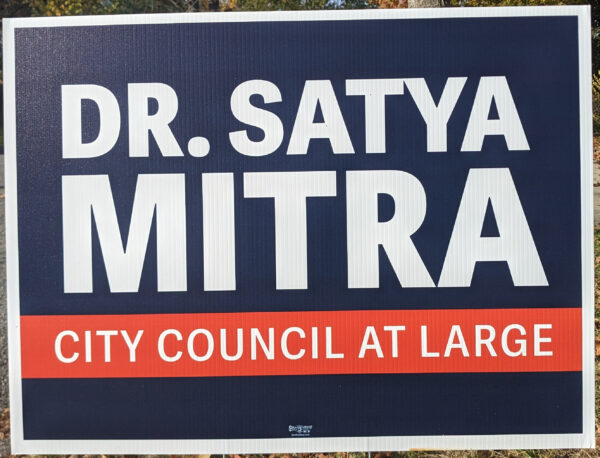 This is my favorite challenger sign, though I’m having trouble figuring out why. Maybe it’s just so darn readable? It even omits the hyphen from “AT-LARGE.” Who needs that visual clutter? This sign wants you to pay a bit more attention to his last name than his first, though there’s also that “Dr.” (biochemistry) in there. Anyone reading this who is a Ph.D., I am curious: when do you use “Dr.” as your title and when do you skip it?
