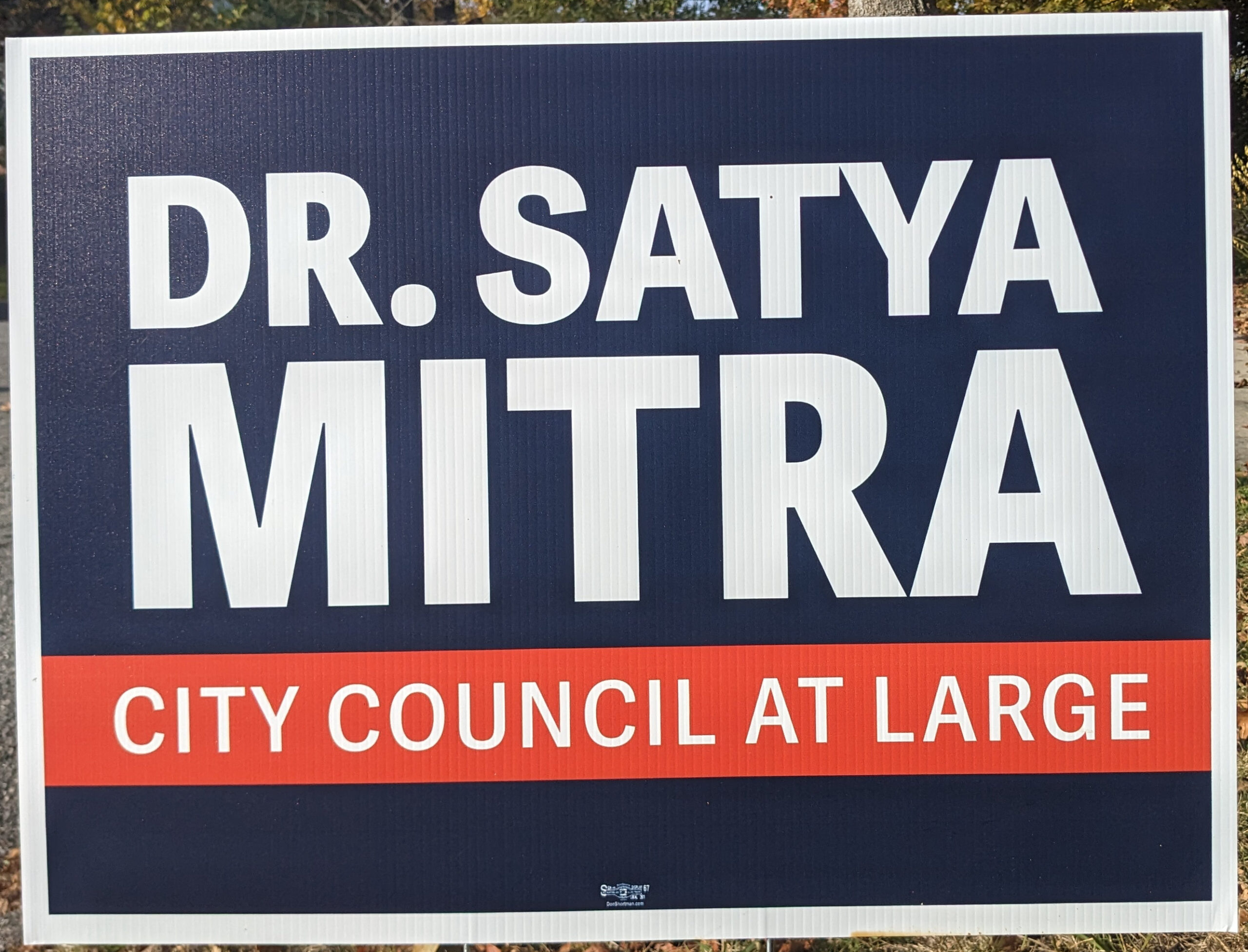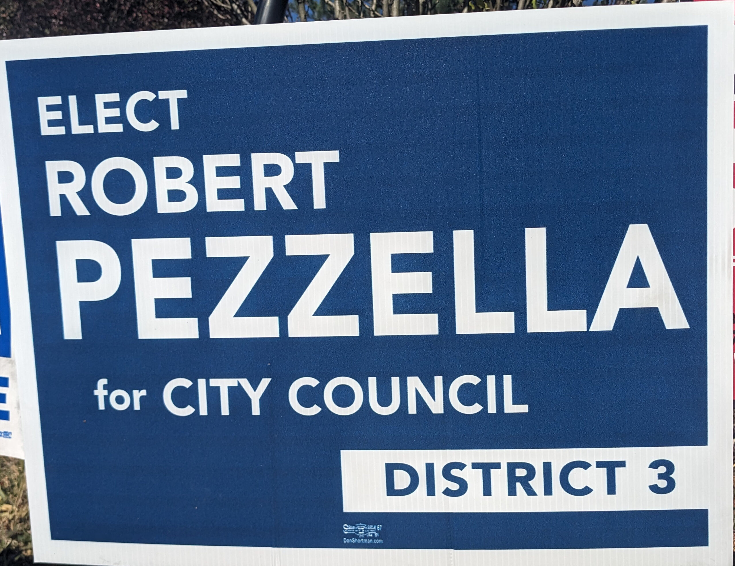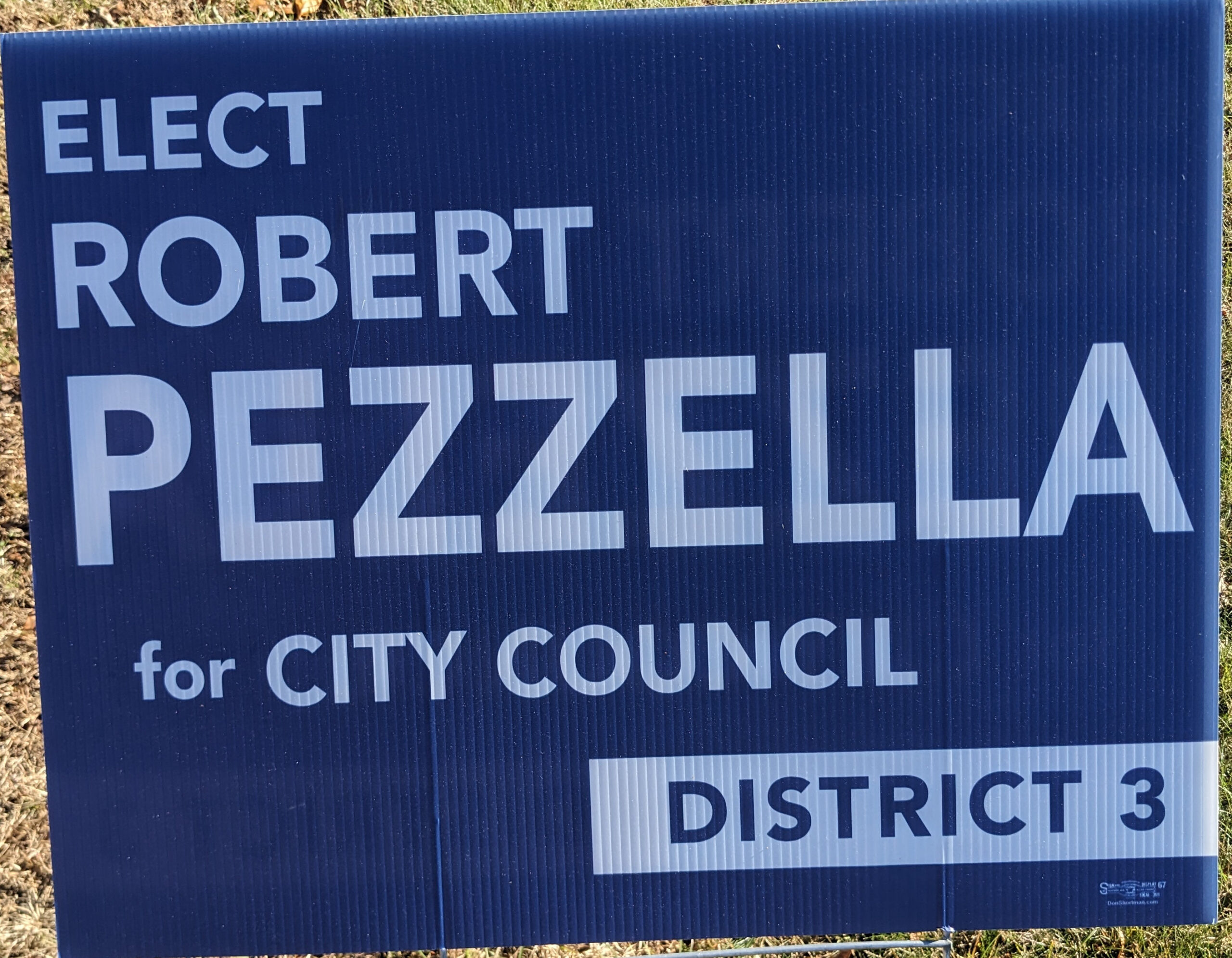This is my favorite challenger sign, though I’m having trouble figuring out why. Maybe it’s just so darn readable? It even omits the hyphen from “AT-LARGE.” Who needs that visual clutter? This sign wants you to pay a bit more attention to his last name than his first, though there’s also that “Dr.” (biochemistry) in there. Anyone reading this who is a Ph.D., I am curious: when do you use “Dr.” as your title and when do you skip it?